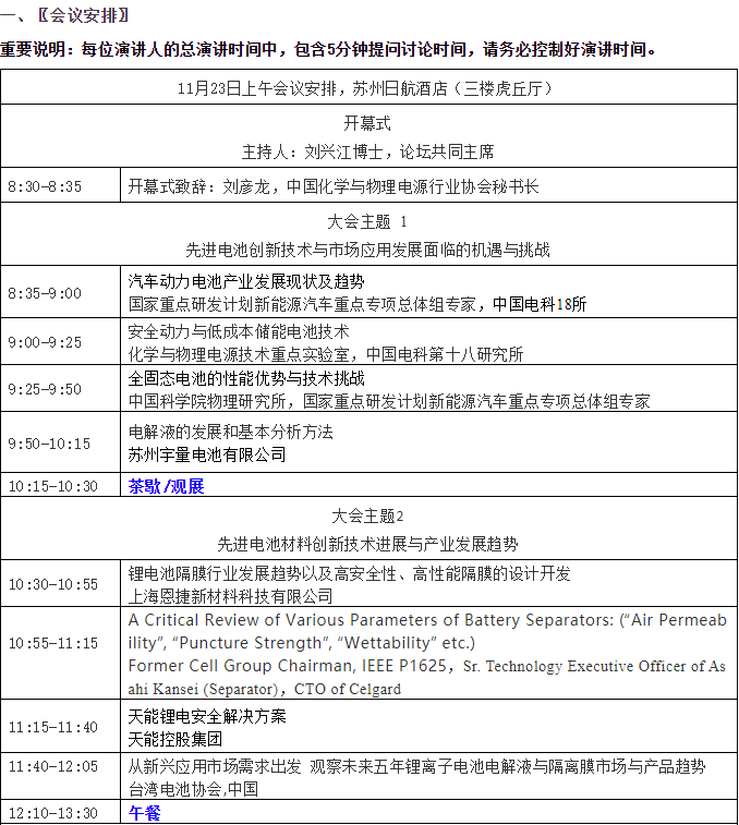 为积极响应各地防疫要求,配合做好新一轮疫情防控工作,同时确保参会者安全,原定于11月8-10日在苏州日航酒店举办的“第五届新型电池电解质/隔膜材料技术国际论坛”被延期。现在北京及其他各地的疫情已经得到有效控制,结合周边情况和其他会议安排动态,组委会决定: “第五届新型电池电解质/隔膜材料技术国际论坛”将于2021年11月22日-24日(22日报到),特请大家做好参会准备。